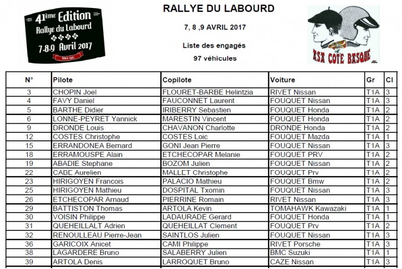 Voici la liste définitive de 97 engagés !