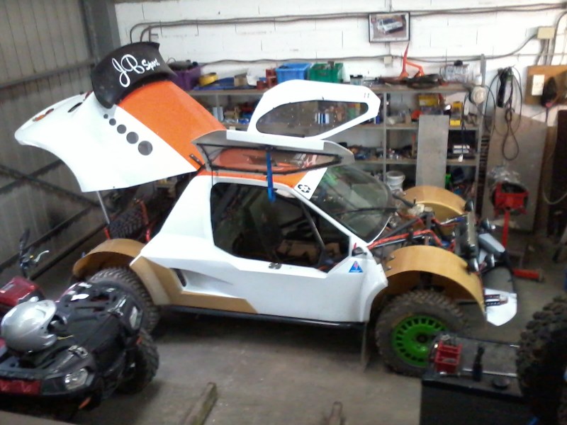 C'est un buggy FOUQUET que j'ai sorti l'an dernier. Ce n'est pas le dernier buggy de Laurent FOUQUET, celui là je l'avais vendu. Ce buggy neuf est monté avec un NISSAN 3.6L de chez FOUCART, une boite SADEV 6 vitesses séquentielle et 8 amortisseurs OHLINS.